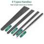 【4 Types Handles + 9 Types Blades】Includes 4 Types handles (Large, Medium, Small and Mini Round) and 9 Types interchangeable blades (NO.1-9), NO.1-2 fit for Large handle, NO.3-4 fit for Medium Handle, NO.5-7 fit for Small Handle, NO.8-9 fit for Mini Round Handle. Providing a variety of options to meet all your pedicure needs. Each blade type comes with 5 pieces, giving you a total of 45 blades (9 types x 5 pieces).